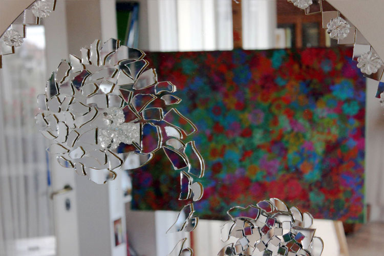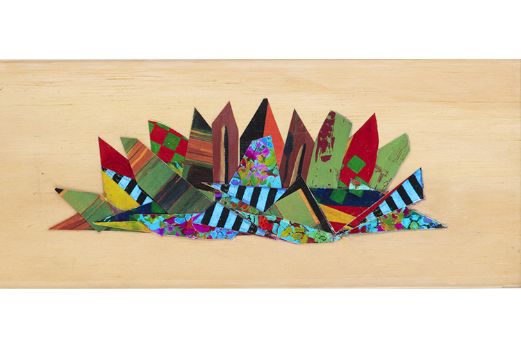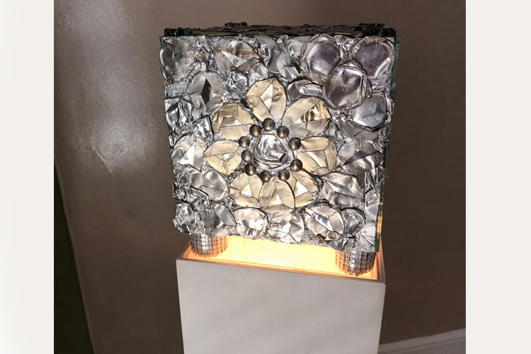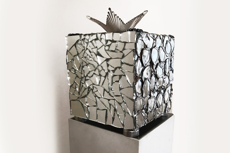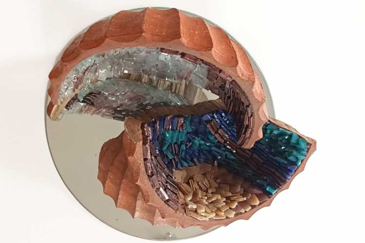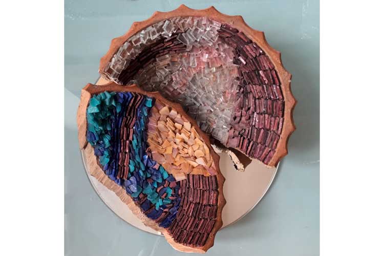 Objeto, Cuenco de madera intervenido con vidrio y venecita